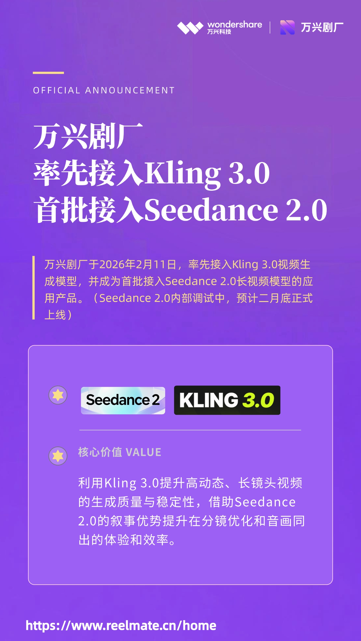 $万兴科技(SZ300624)$ 万兴剧厂首批接入seedance2.0应用产品