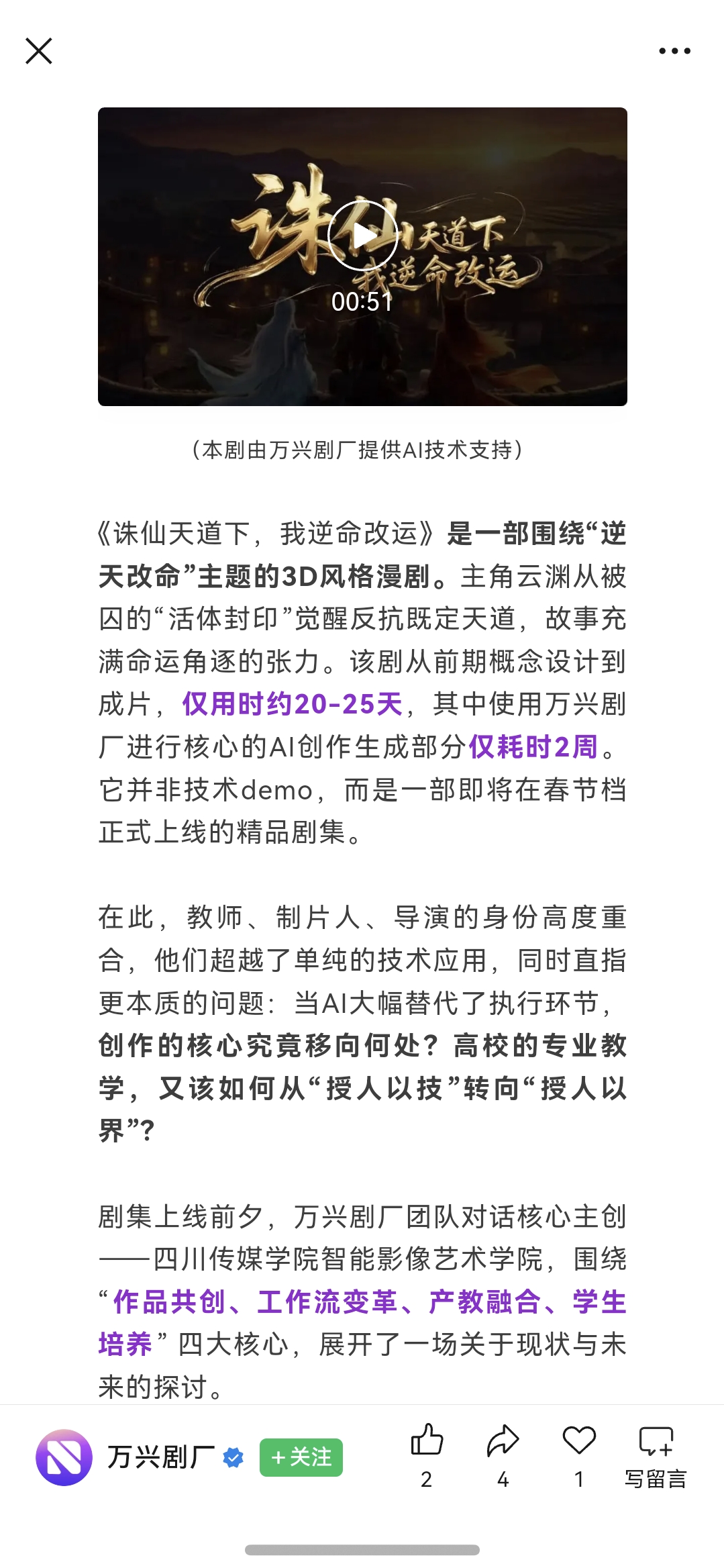 这部由万兴制作的3D漫剧在头部平台上映,万兴科技会涨停吗???