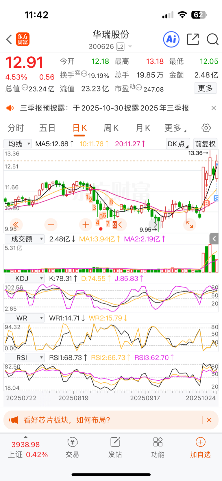 $华瑞股份(SZ300626)$ 走了,前天贪心没走,10个点盈利变6个点