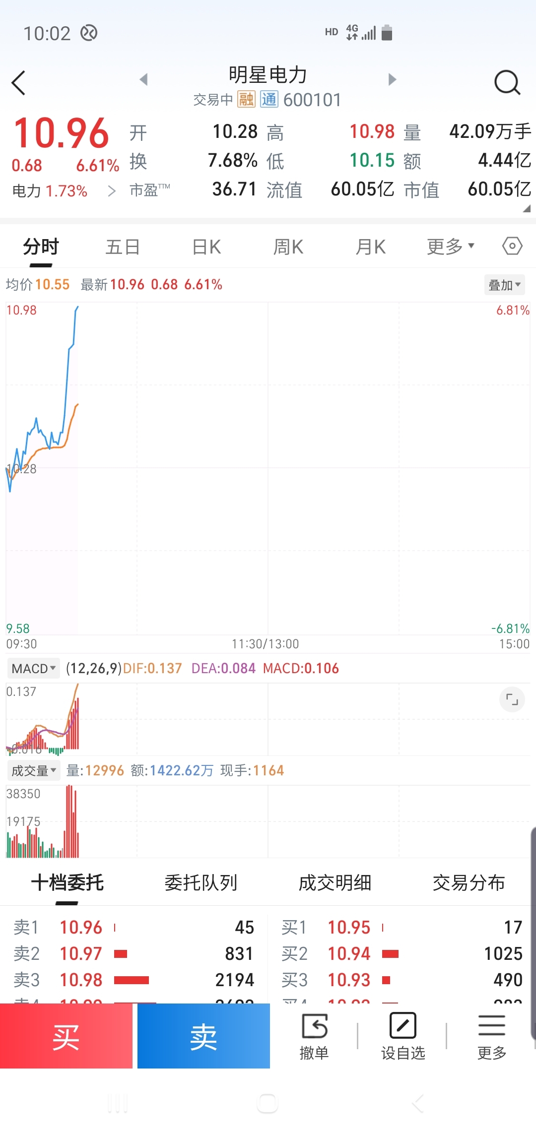 明星电力到预期10元66上方清仓。