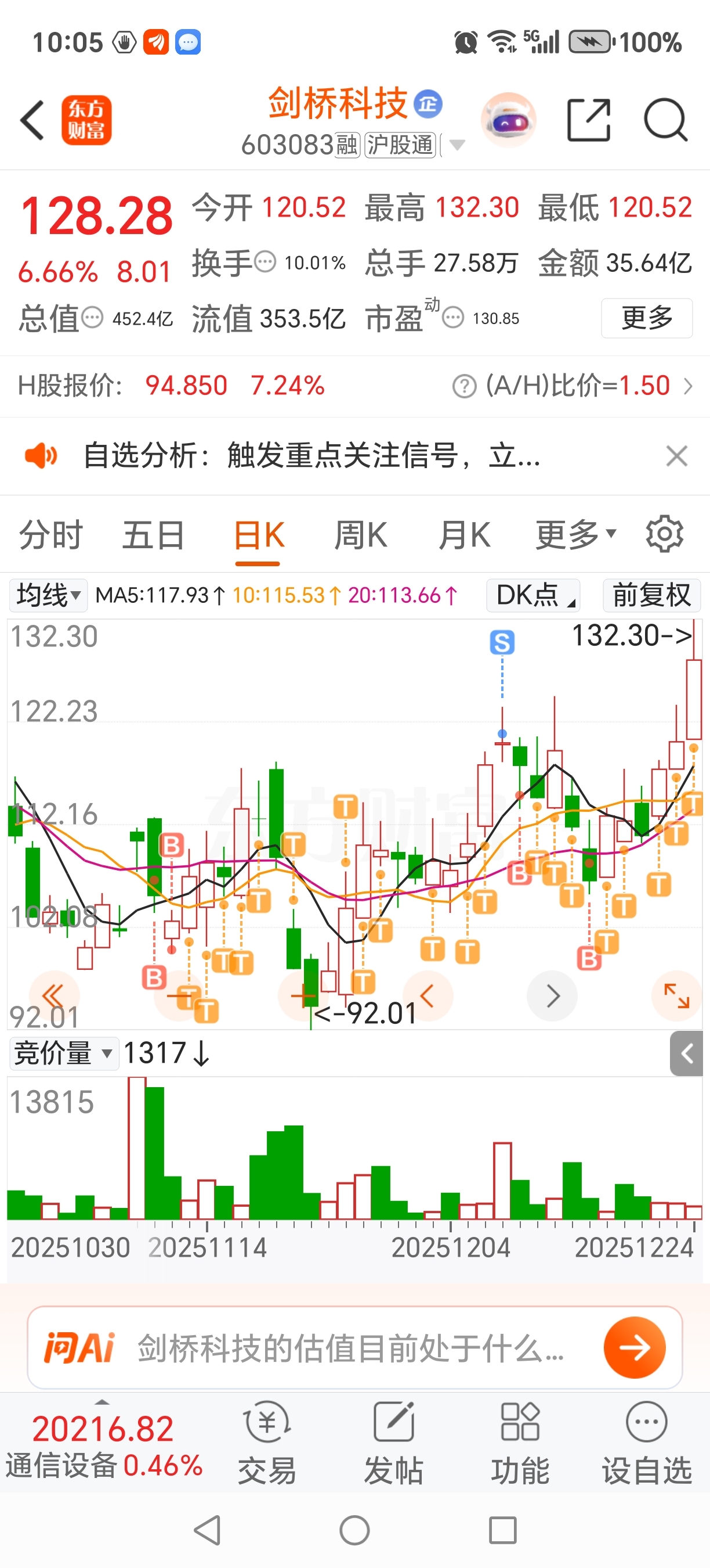 看看我的剑桥,又涨停,同是通信