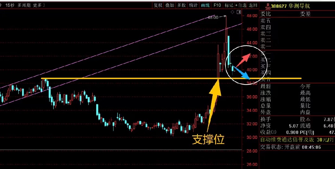 $华测导航(SZ300627)$ 近期大幅拉升之后,头上碰到压力位区间而回调,走得比较标准,短线来看,这里回落下来,重点观察脚底横线位置,也就是前高区域作为支撑点,能稳住短线就还能看个反抽动作,如果稳不住就要继续回落调整,这样就偏弱了,需要控制仓位应对。
