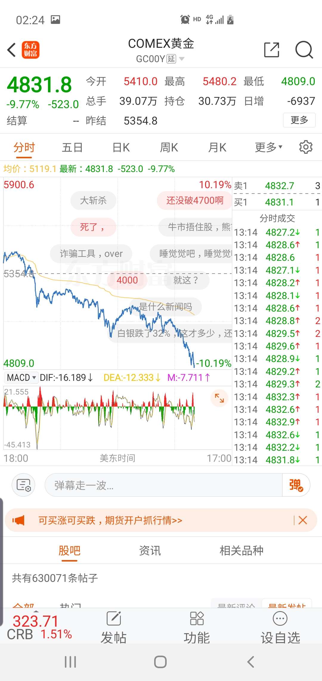 金,银,有色涨的太猛,有点进入最后赶顶预兆,随时有跳水概率