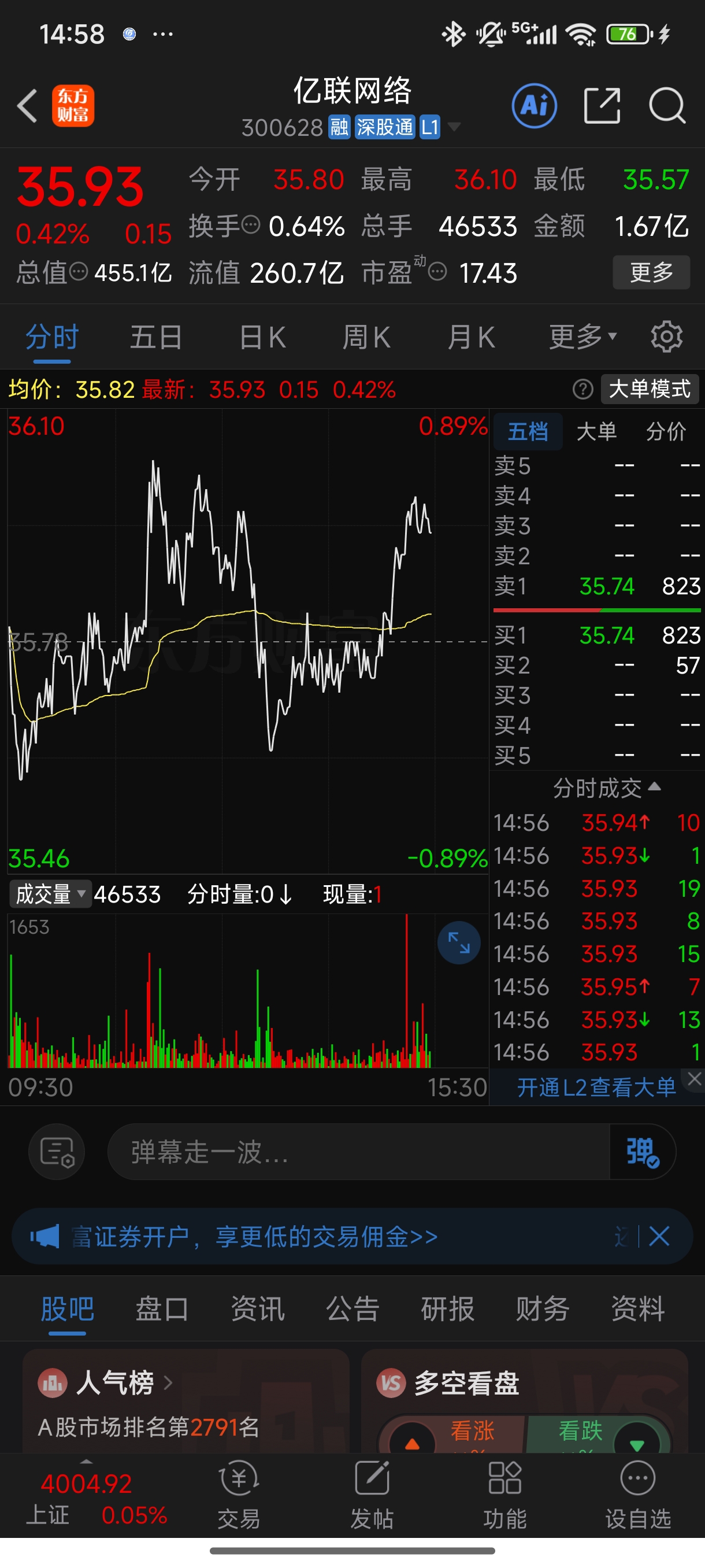 $亿联网络(SZ300628)$ 这收盘集合竞价真有意思哈哈哈