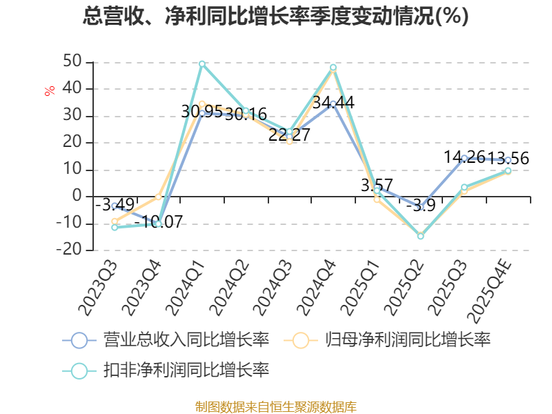 据公告,报告期内,公司销售业务保持平稳,市场拓展及业务推进带动营业收入稳步增长。公司经营质量在第四季度进一步提升,国际贸易环境波动及海外产能转移节奏对经营的影响有所改善,收入及利润表现较前三季度持续回升。