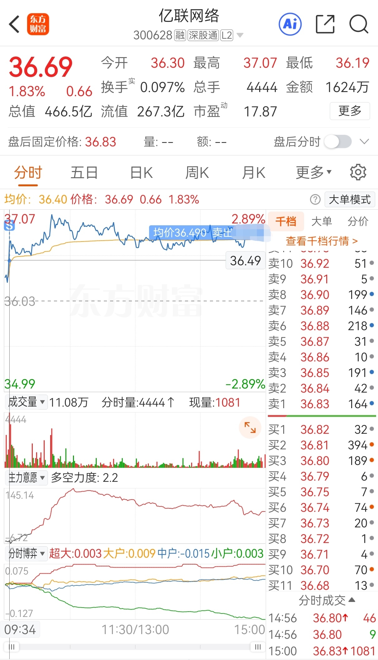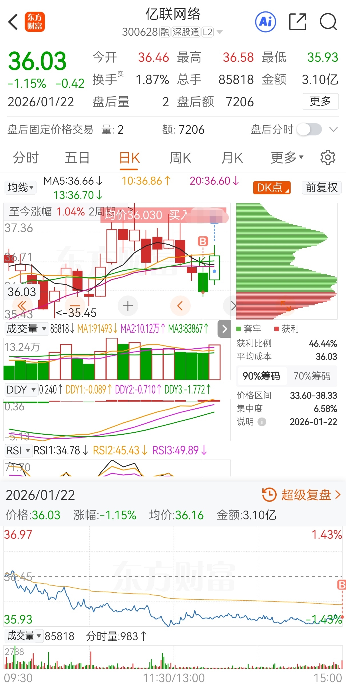 $亿联网络(SZ300628)$ 今买明卖,36.03买,36.49卖,实盘隔夜套利亿联网络,成功收米走人!