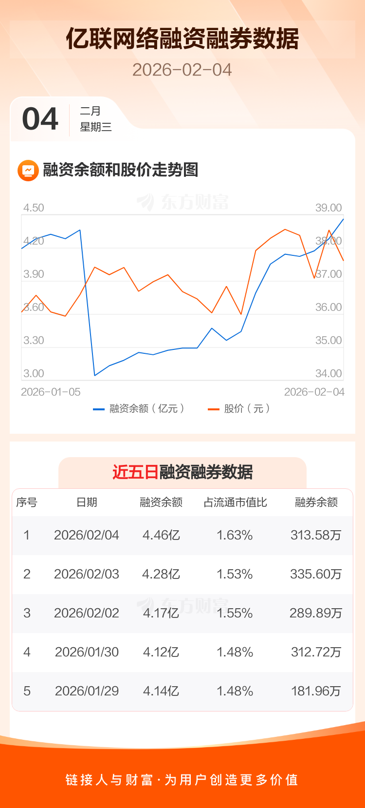 交易所最新数据显示,亿联网络于2026年2月4日获融资买入6138.88万元,融资偿还4355.67万元,当日融资净买入1783.21万元。目前,该股融资余额4.46亿,占流通市值比例为1.63%。