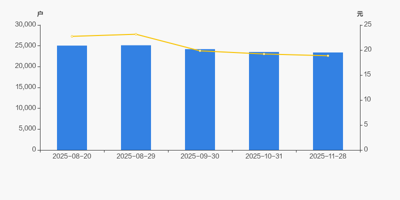 自2025年8月29日以来,公司股东户数连续3期下降,截至目前减幅为6.86%。2025年8月29日至2025年11月28日区间股价下降18.57%。