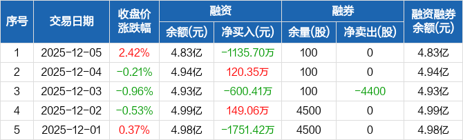 新劲刚:融资净偿还1135.7万元,融资余额4.83亿元(12-05)