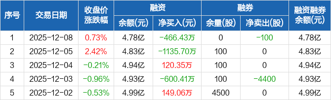 新劲刚:融资净偿还466.43万元,融资余额4.78亿元(12-08)