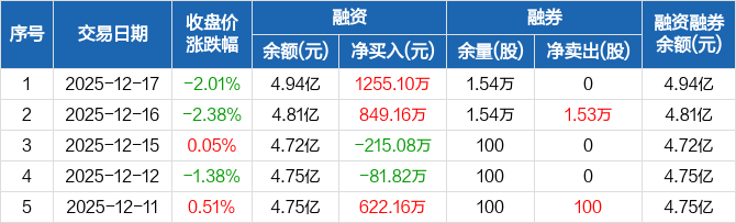 新劲刚:融资净买入1255.1万元,融资余额4.94亿元(12-17)