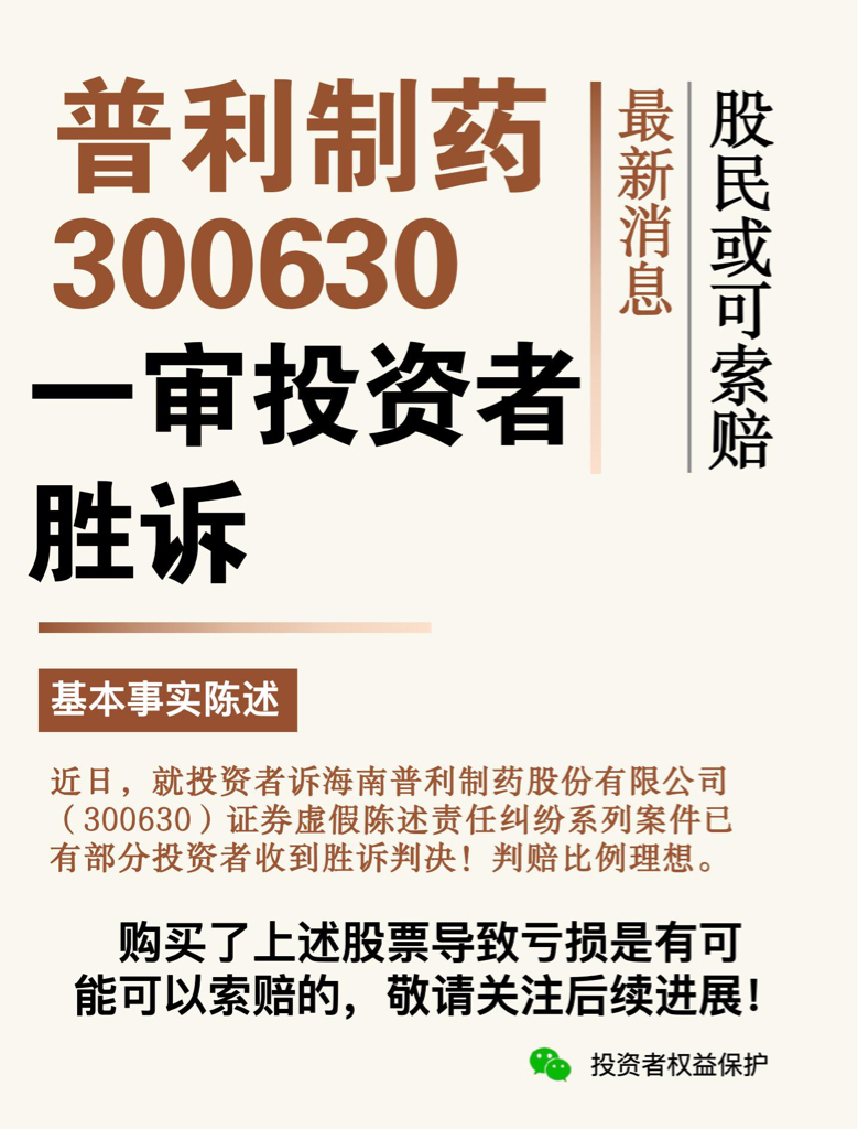 【索赔条件】于2022年4月26日至2024年4月15日之间买入普利制药股票,并