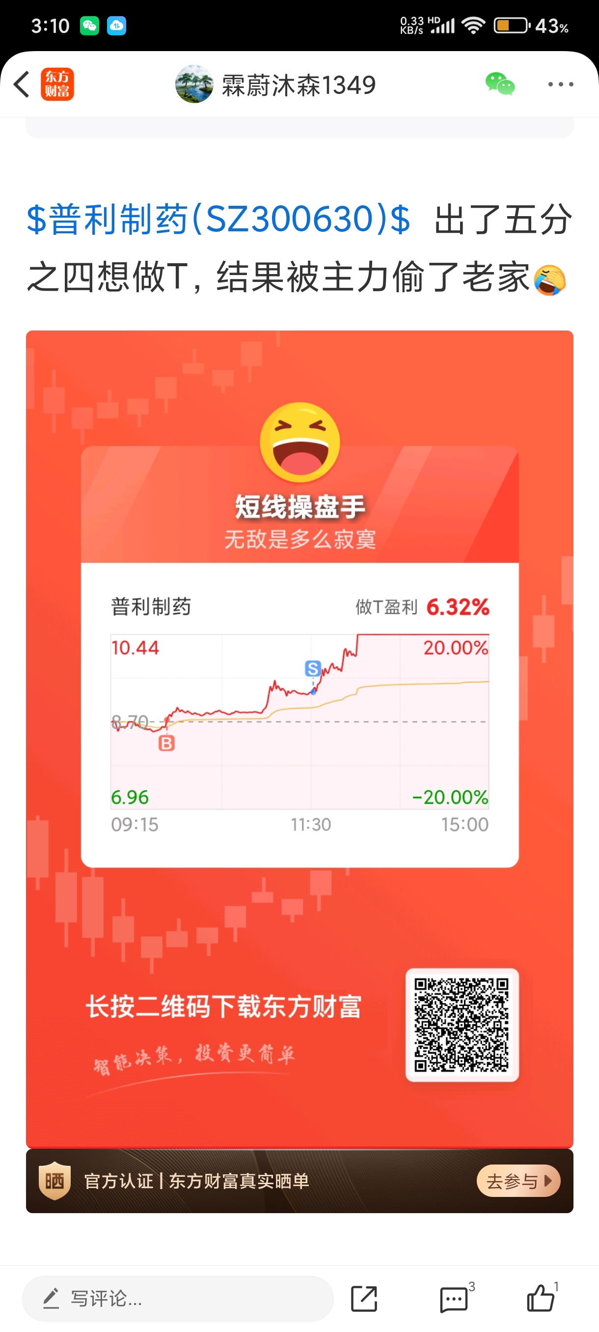 温馨提示: 1.根据《证券法》规定,禁止编造、传播虚假信息或者误导性信息,扰乱证券市场;2.用户在本社区发表的所有资料、言论等仅代表个人观点,与本网站立场无关,不对您构成任何投资建议。用户应基于自己的独立判断,自行决定证券投资并承担相应风险。《东方财富社区管理规定》