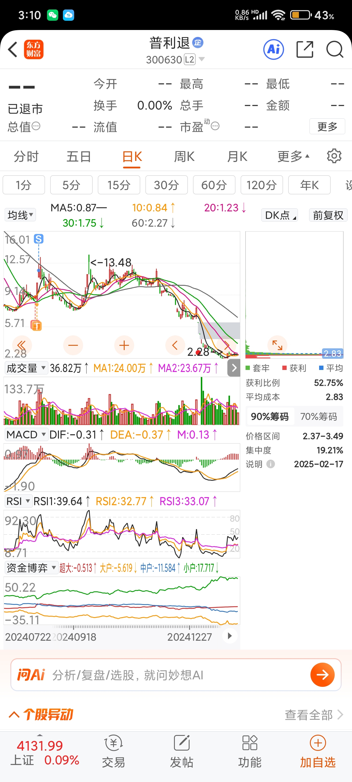 之前还买过,卖飞了,没想到说退市就退了