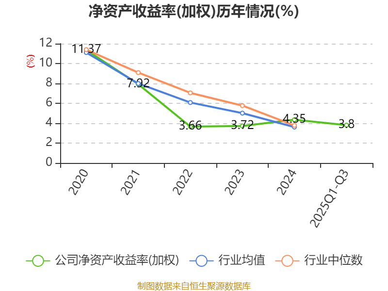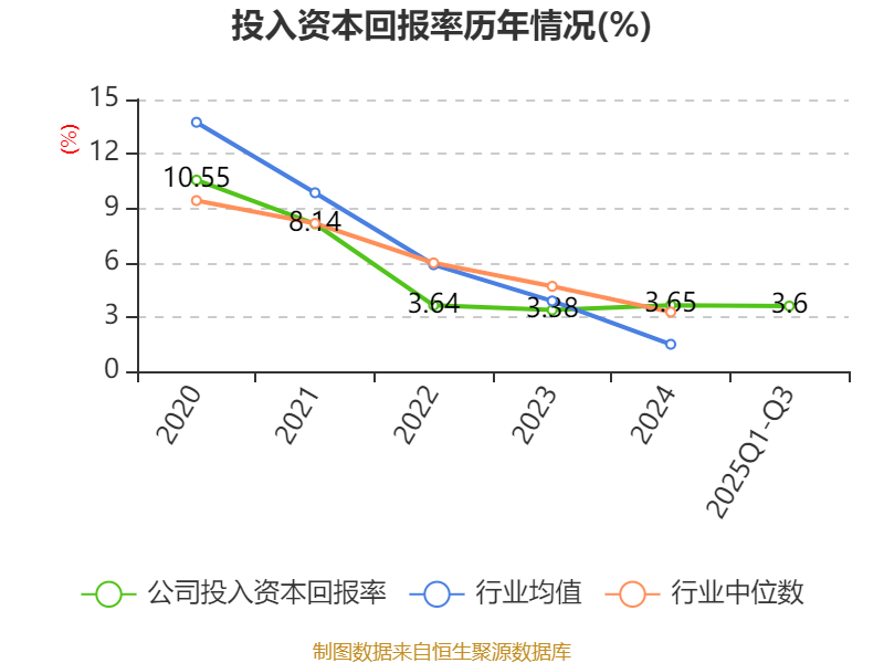 盈利能力方面, 2025年前三季度公司加权平均净资产收益率为3.8%,同比上升2.11个百分点。公司2025年前三季度投入资本回报率为3.6%,较上年同期上升2.3个百分点。
