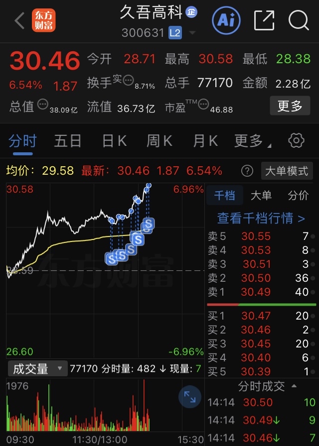 $久吾高科(SZ300631)$ 昨天捡的不要钱的筹码今天爽爽派发