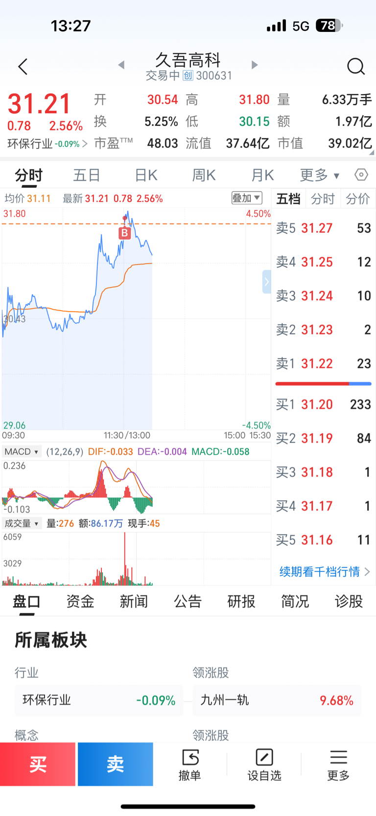 $久吾高科(SZ300631)$ 一买就崩,对不住了