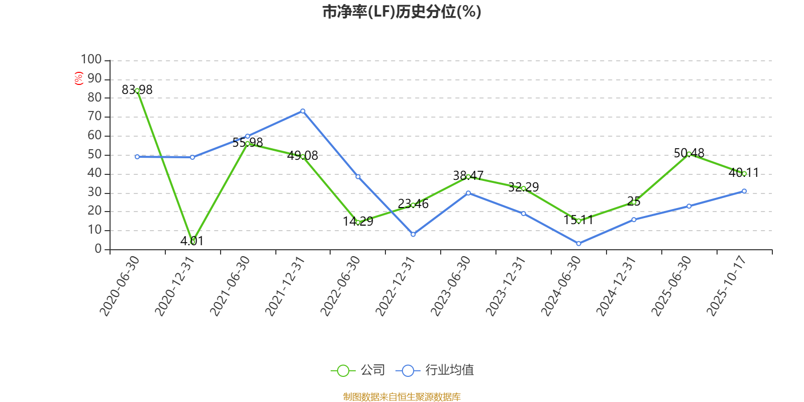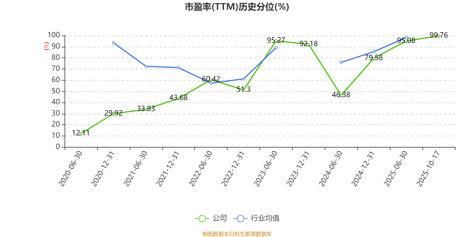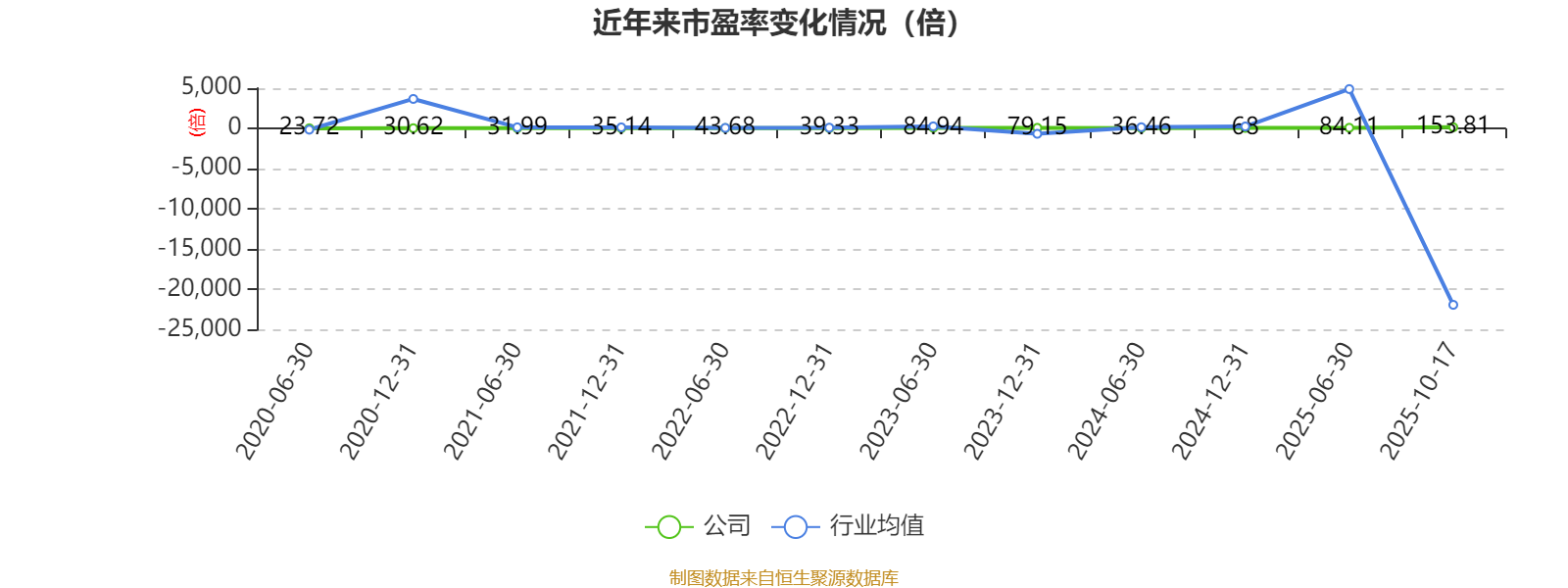 市盈率、市净率为负时,不显示当期分位数,会导致折线图中断。