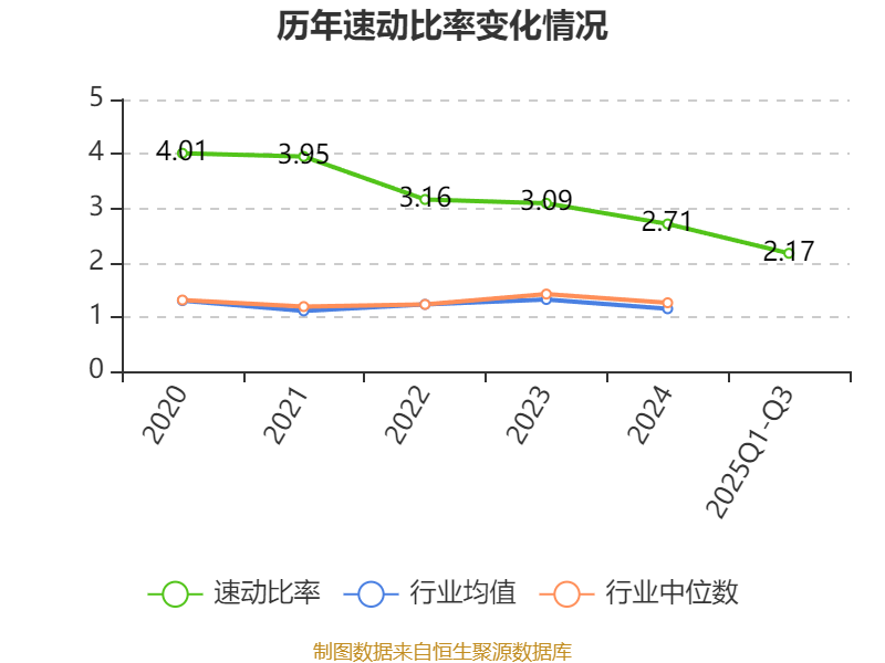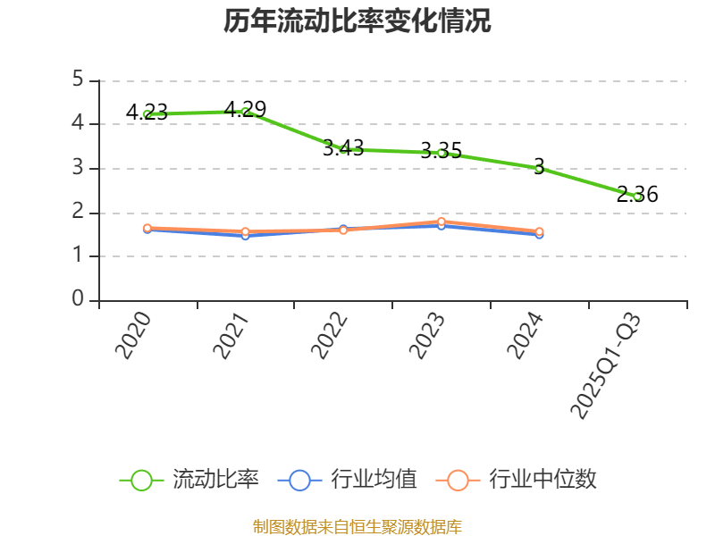2025年前三季度,公司流动比率为2.36,速动比率为2.17。