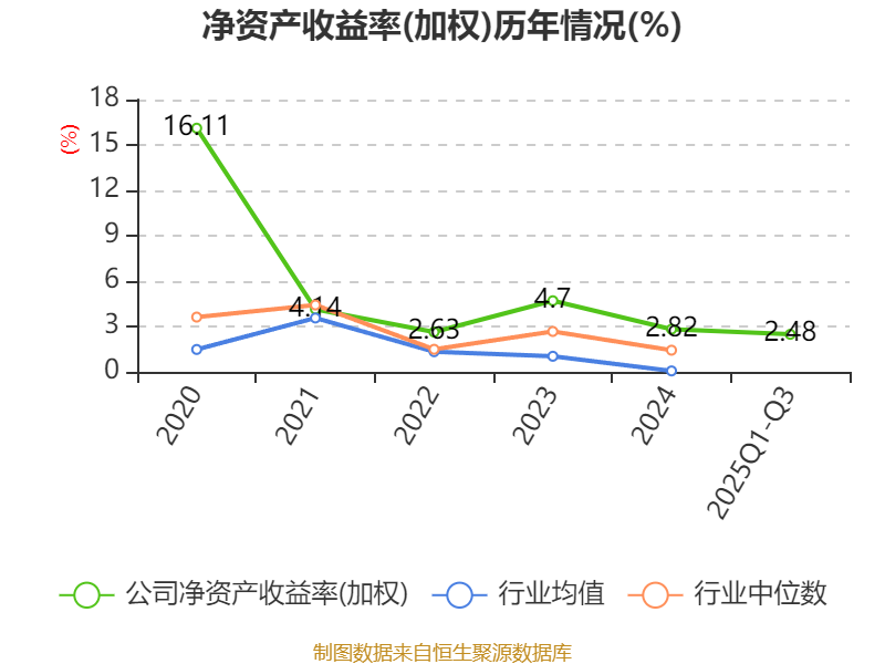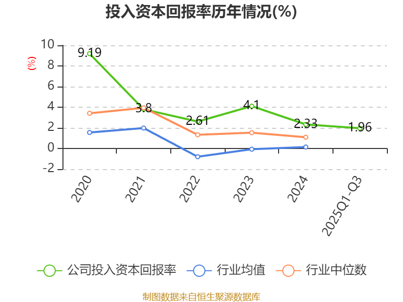 盈利能力方面, 2025年前三季度公司加权平均净资产收益率为2.48%,同比下降1.23个百分点。公司2025年前三季度投入资本回报率为1.96%,较上年同期下降1.31个百分点。