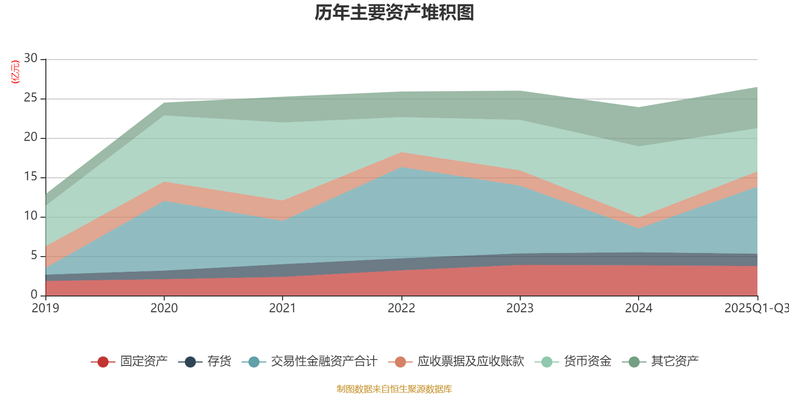 资产重大变化方面,截至2025年三季度末,公司交易性金融资产合计较上年末增加182.4%,占公司总资产比重上升19.59个百分点;货币资金较上年末减少39.36%,占公司总资产比重下降17.06个百分点;一年内到期的非流动资产较上年末减少81.86%,占公司总资产比重下降3.15个百分点;固定资产较上年末减少2.4%,占公司总资产比重下降1.9个百分点。