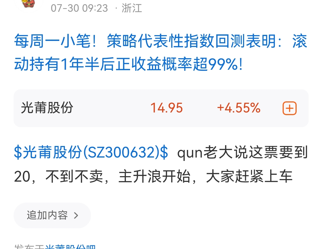 郑重声明:用户在财富号/股吧/博客等社区发表的所有信息(包括但不限于文字、视频、音频、数据及图表)仅代表个人观点,与本网站立场无关,不对您构成任何投资建议,据此操作风险自担。请勿相信代客理财、免费荐股和炒股培训等宣传内容,远离非法证券活动。请勿添加发言用户的手机号码、公众号、微博、微信及QQ等信息,谨防上当受骗!