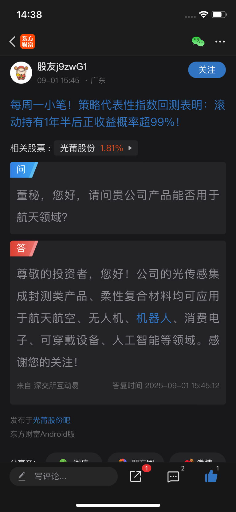 $光莆股份(SZ300632)$ 公司的光传感集成封测类产品、柔性复合材料均可应用于航天航空、无人机、机器人、消费电子、可穿戴设备、人工智能等领域。