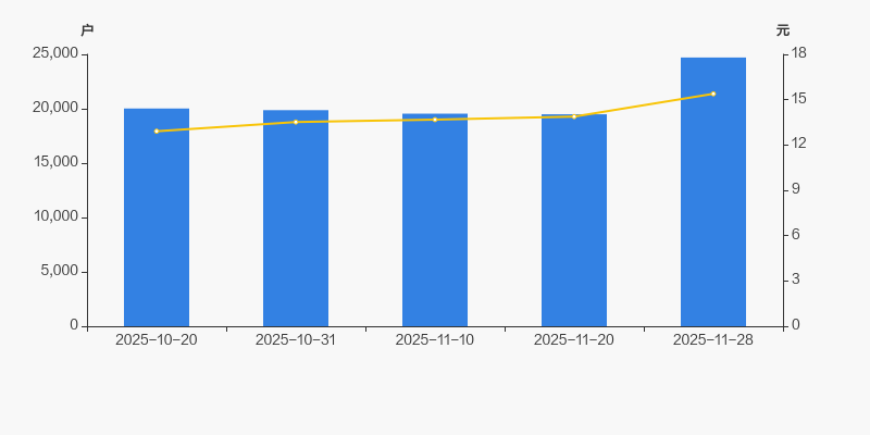 2025年10月20日至今,公司股东户数显著增长,区间涨幅为23.42%。2025年10月20日至2025年11月28日区间股价上涨19.21%。