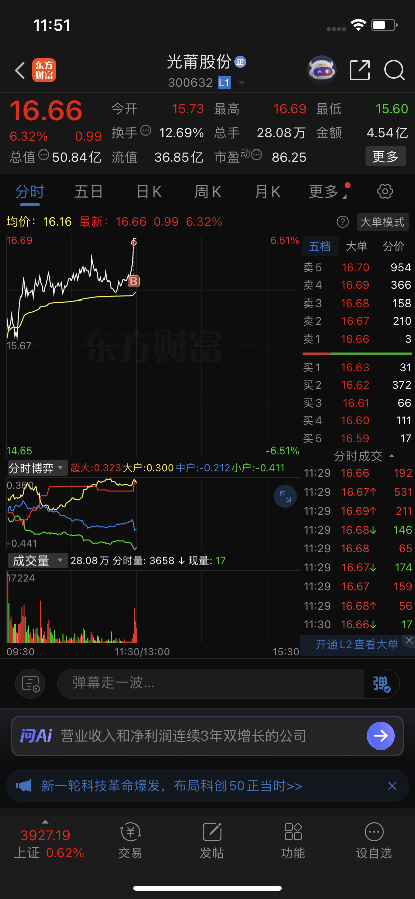 $光莆股份(SZ300632)$ 主力花那么多拉到新高,陪你五成仓位,从商业航天出来玩两天,董秘会聊天啊,午盘回这么多