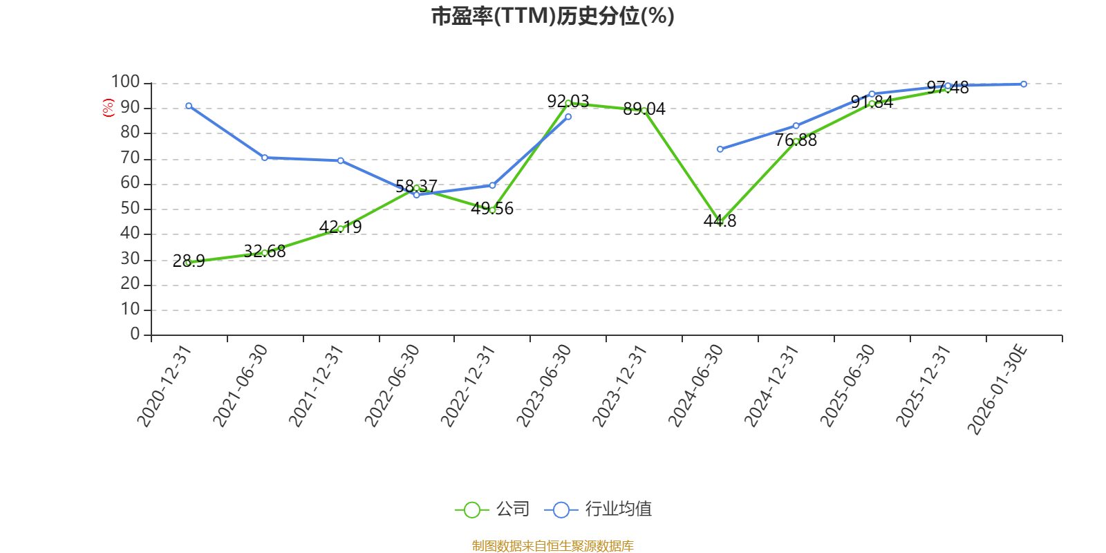 市盈率、市净率为负时,不显示当期分位数,会导致折线图中断。