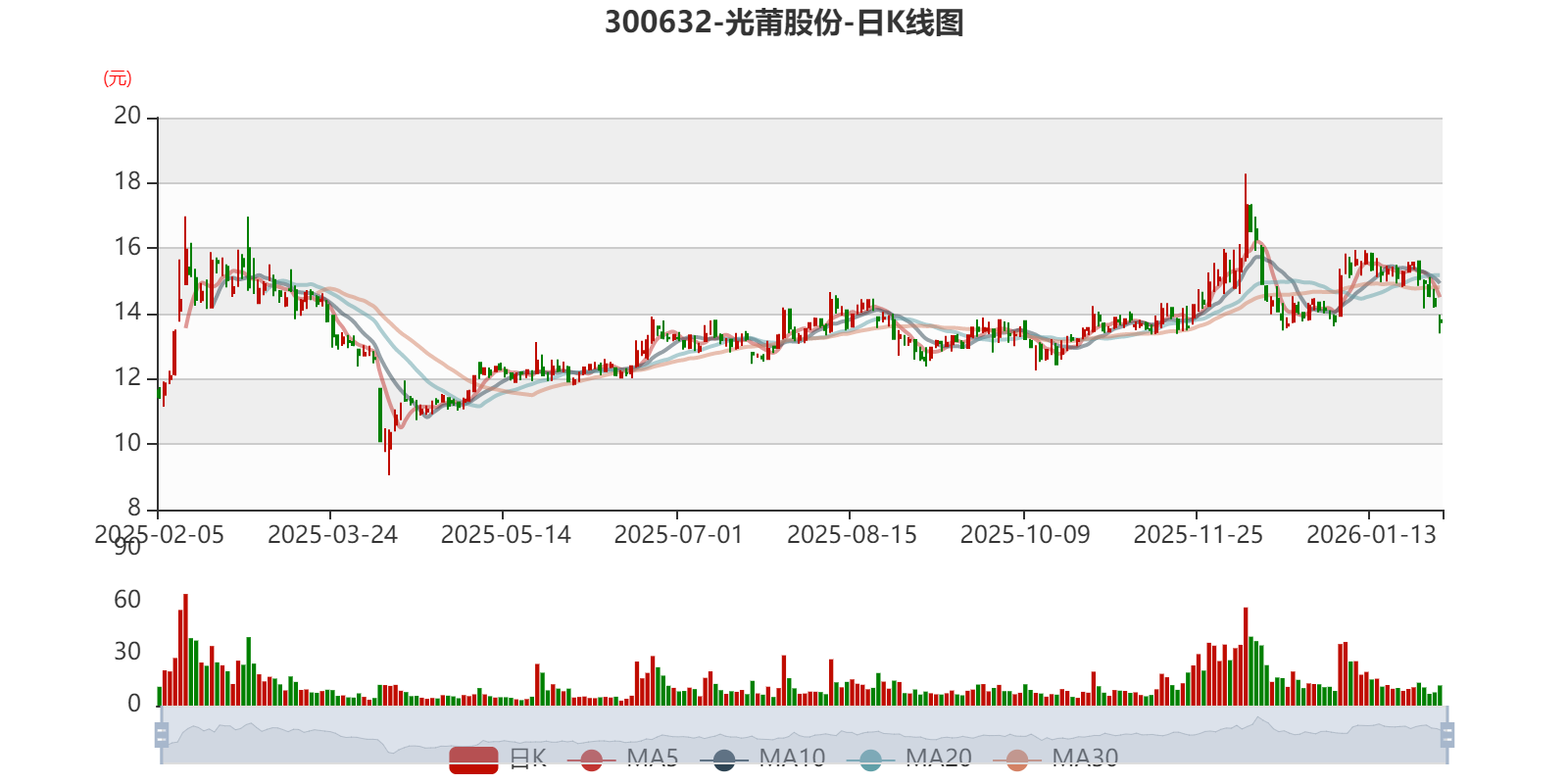 中证智能财讯光莆股份(300632)1月30日晚间披露2025年度业绩预告,预计2025年实现营业收入8亿元至8.5亿元;归母净利润亏损600万元至1200万元,上年同期盈利5219.81万元;扣非净利润亏损4000万元至5500万元,上年同期盈利1766.8万元。以最新收盘价计算,市净率(LF)约2.35倍,市销率(TTM)约5.08倍。