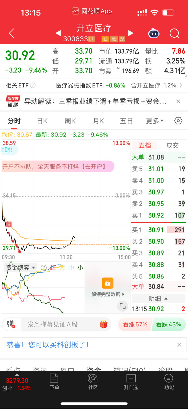 $开立医疗(SZ300633)$ 批次买入;利润有两个点了。今天抄底,胆子有点大。