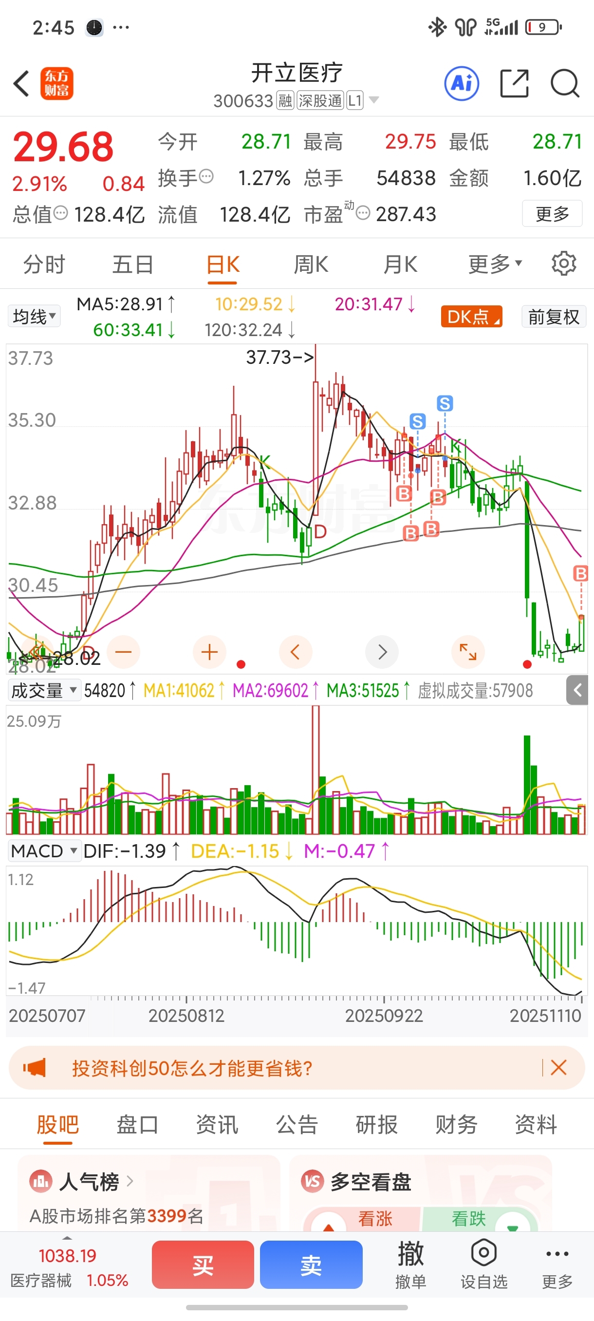 $开立医疗(SZ300633)$ 我又回来了