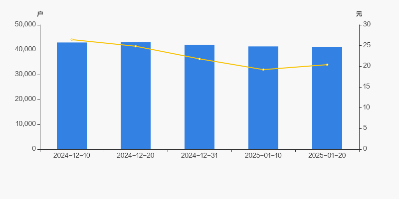 自2024年12月20日以来,公司股东户数连续3期下降,截至目前减幅为4.43%。2024年12月20日至2025年1月20日区间股价下降17.91%。