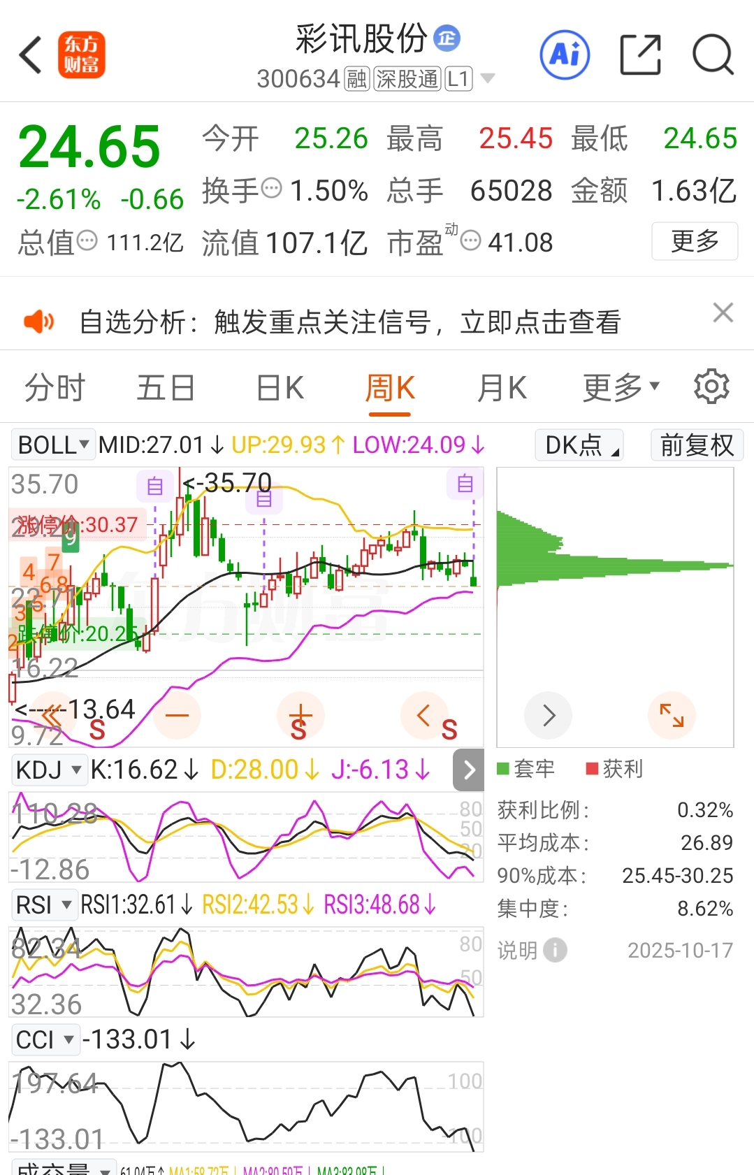 $彩讯股份(SZ300634)$ 么有想到,抄底把自己套住了,还好成本低于90%的人。