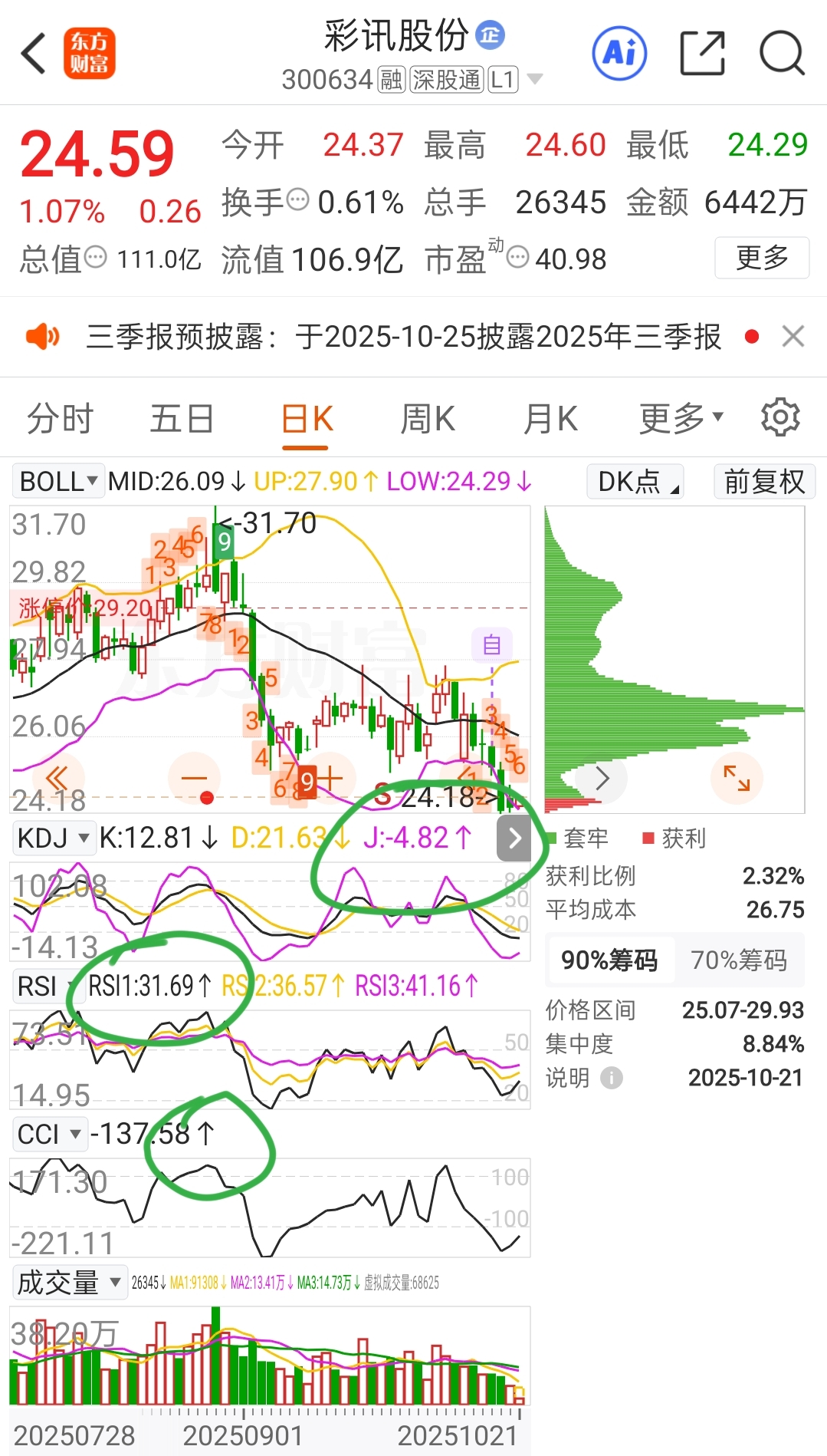 $彩讯股份(SZ300634)$ 三线向上,昨天一系列的董秘问答,大家都知道这股基本面很好,九转还没结束,今天算是提前启动反弹了。继续补仓,伺机一把回本盈利。
