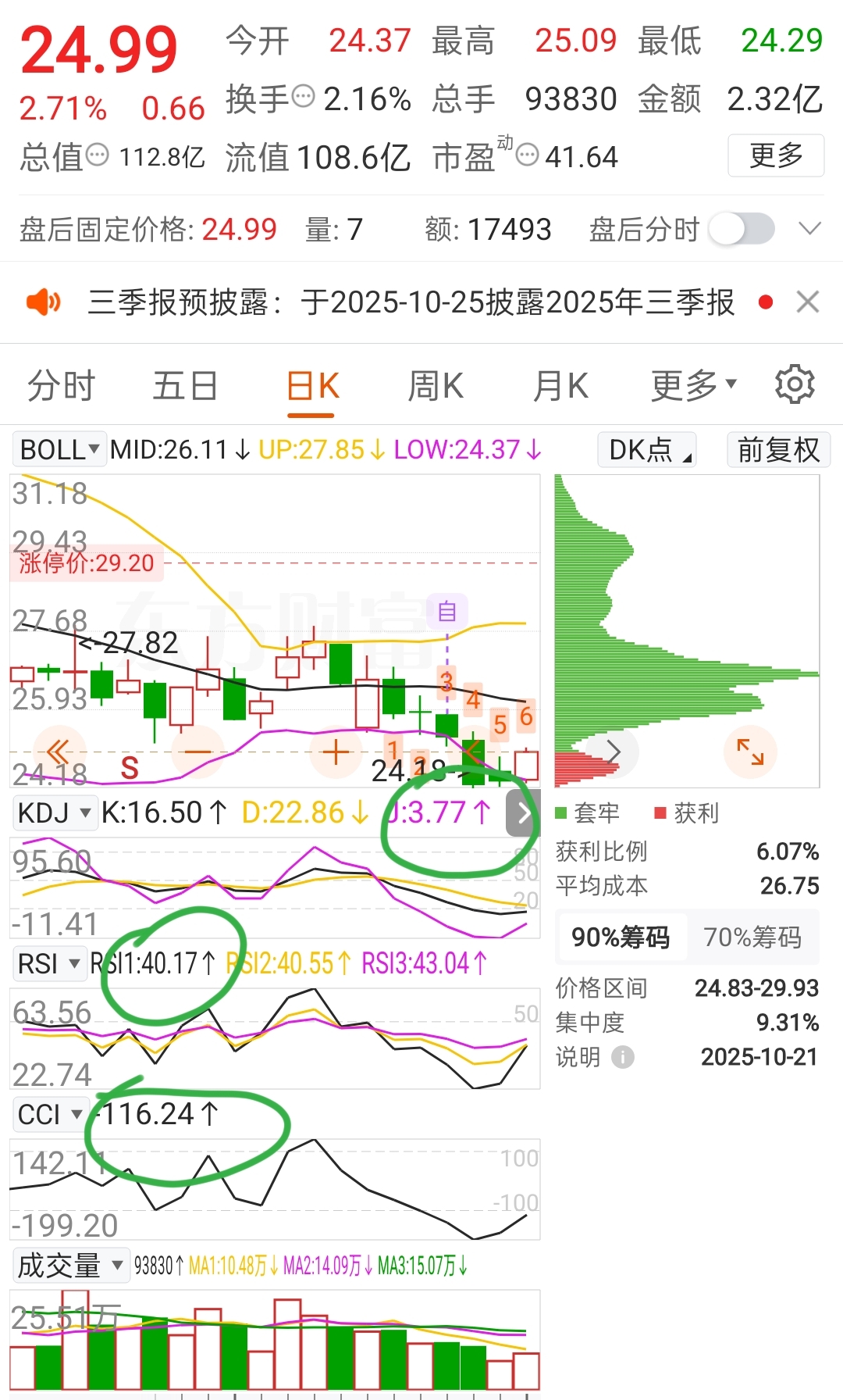 今天站稳25.4的话,九转趋势反转。三线继续向上,马上出两金叉。这样的图形主力应