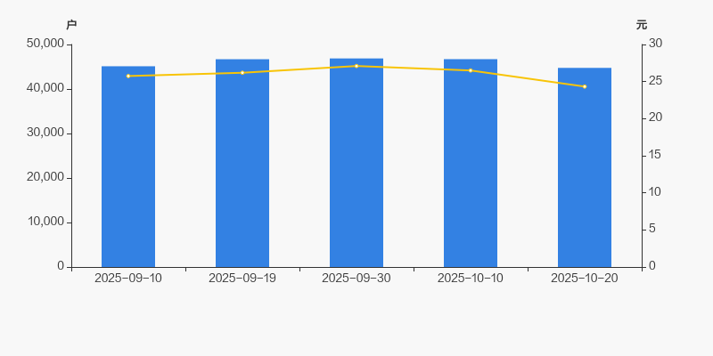 2025年9月10日至今,公司股东户数有所下降,区间跌幅为0.82%。2025年9月10日至2025年10月20日区间股价下降5.52%。