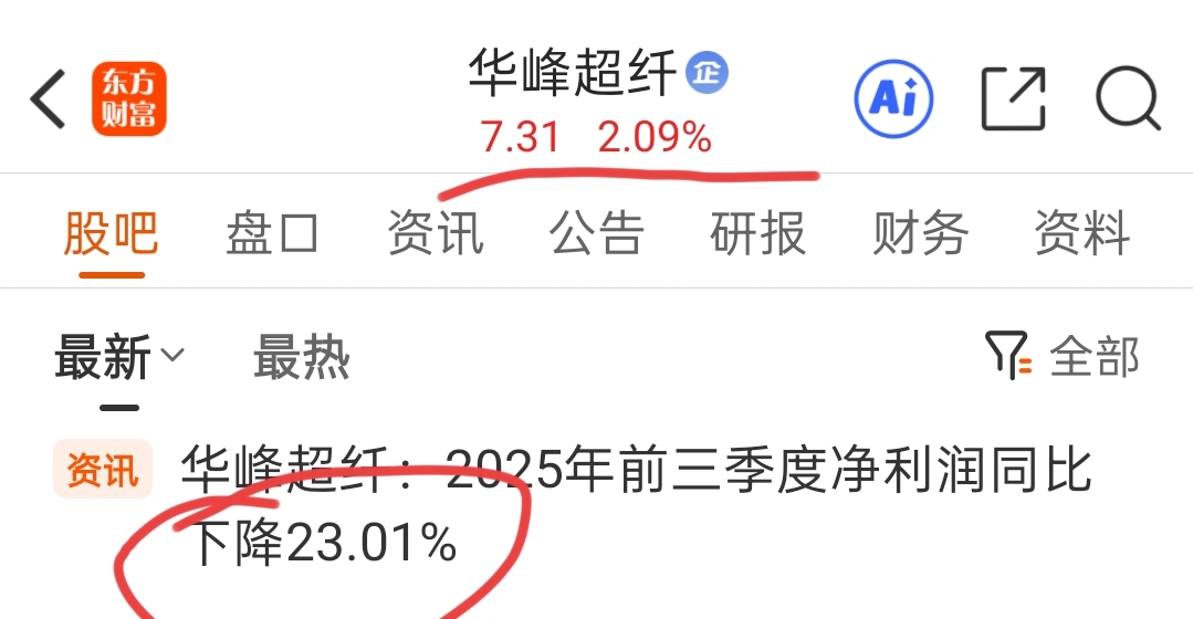 $彩讯股份(SZ300634)$ 同样是净利润同比下降,华峰今天小涨。