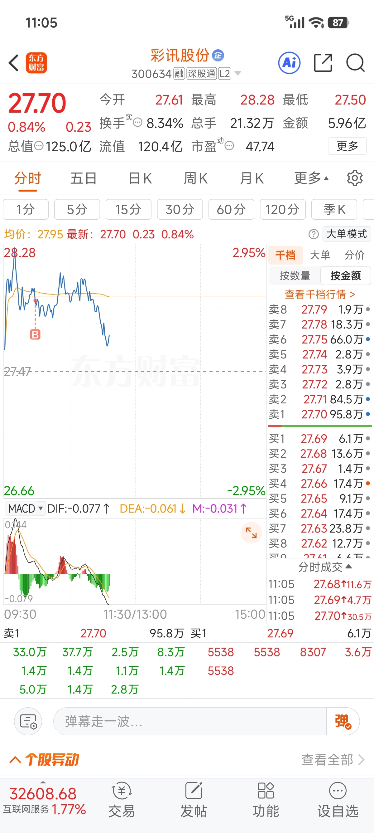 $彩讯股份(SZ300634)$ 上午没戏,下午再看了