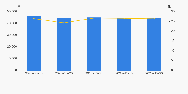 2025年10月10日至今,公司股东户数有所下降,区间跌幅为4.30%。2025年10月10日至2025年11月20日区间股价下降0.26%。