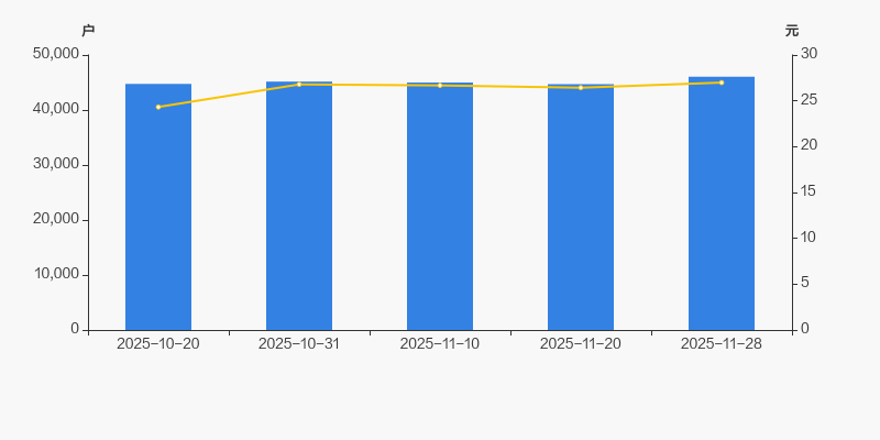 2025年10月20日至今,公司股东户数有所增长,区间涨幅为2.92%。2025年10月20日至2025年11月28日区间股价上涨10.93%。