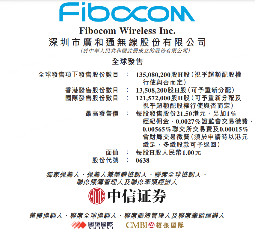 广和通于10月14日至10月17日招股,公司拟全球发售约1.35亿股H股,其中,香港发售占10%,国际发售占90%,另有超额配股权15%。每股发售价19.88港元-21.5港元,每手200股,预期H股将于10月22日在联交所开始买卖。