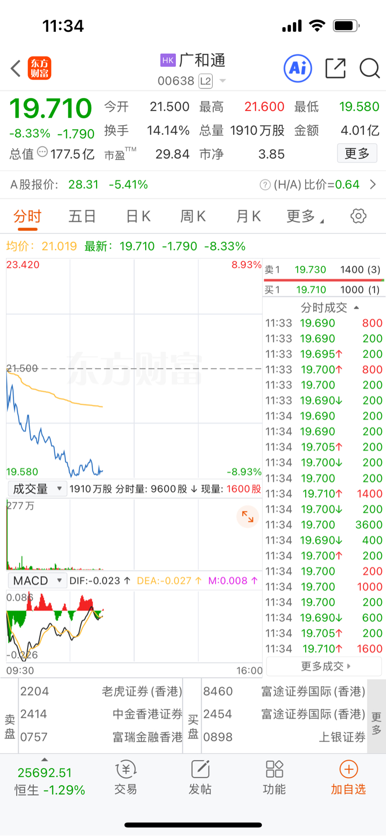 $广和通(SZ300638)$ 老广港股破发了,离“高端大而美”的骨票貌似渐行渐远……
