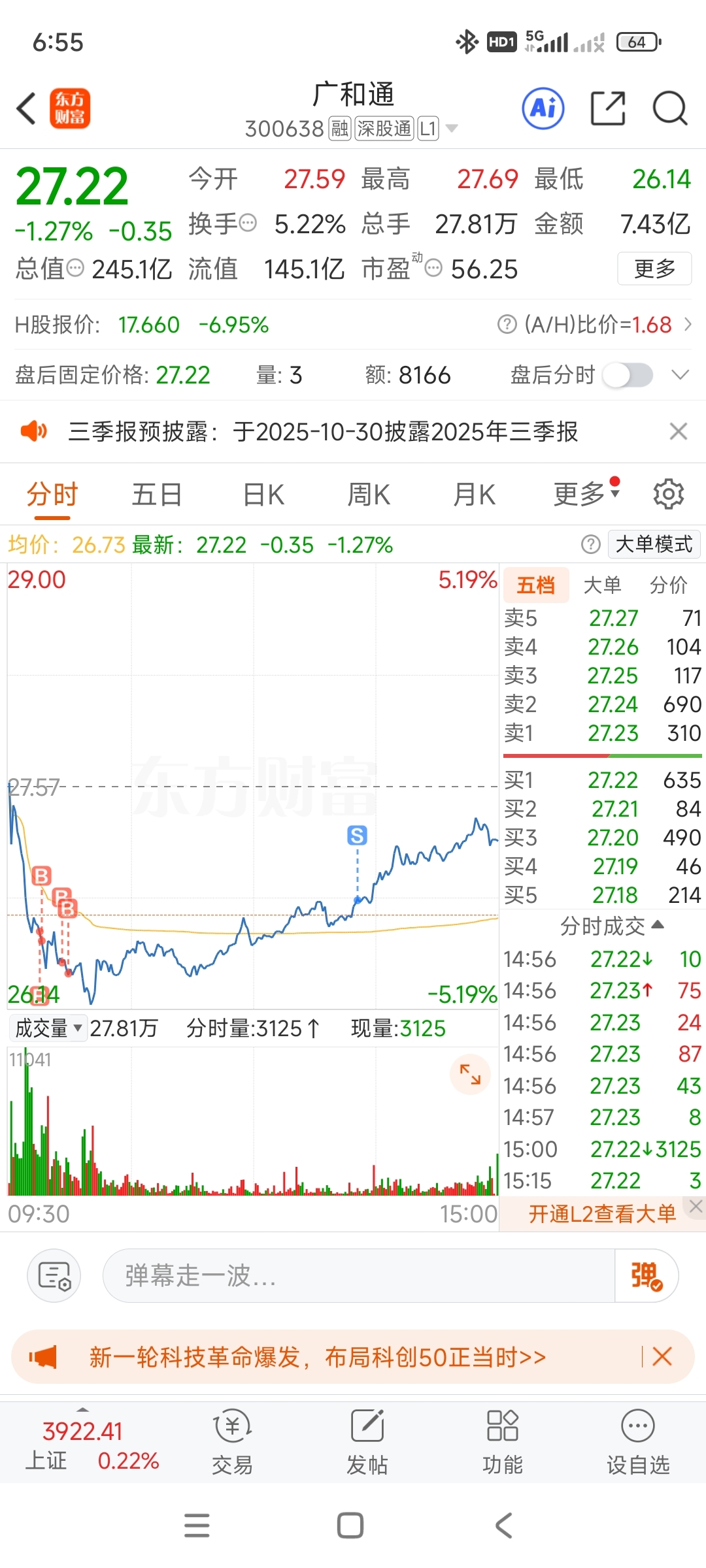 $广和通(SZ300638)$ 虽然卖飞了很难受,不过买的卖的多,也算安慰自己一下了,跌怕了,红了一点就t了