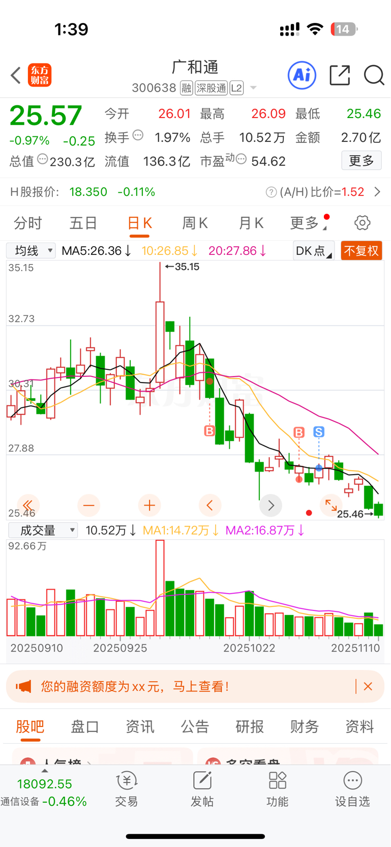 $广和通(SZ300638)$ 补缺口意味着行情结束,一起砸!短线支撑20元附近