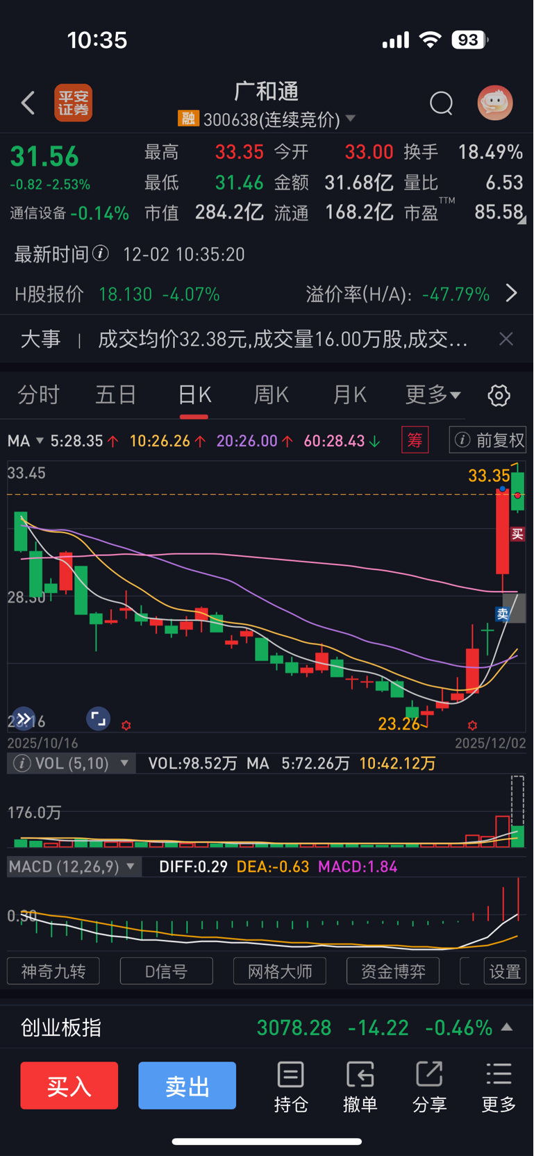 $广和通(SZ300638)$ 昨天板上全仓出了当时后悔不已昨晚复盘看到全是量化就知道结果不好,今天还是买高了一点、只买一半仓位回来,不知道后面走势怎么样?但是有个问题昨天大宗交易32.38没有折价交易他不赚钱吗?