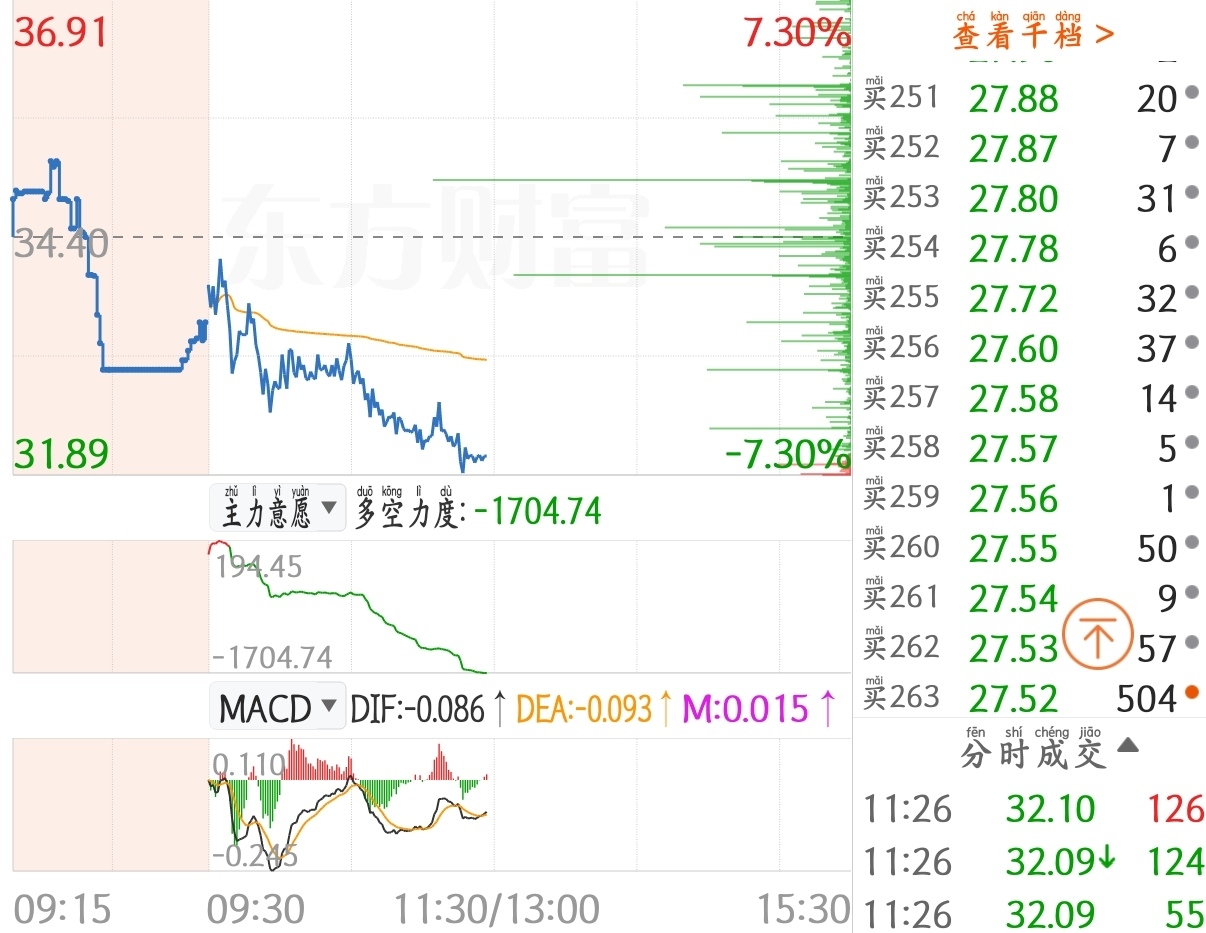 帮你们看了,跌停价27.52只有500手挂单,只需要1万手就可以从-7砸到-20