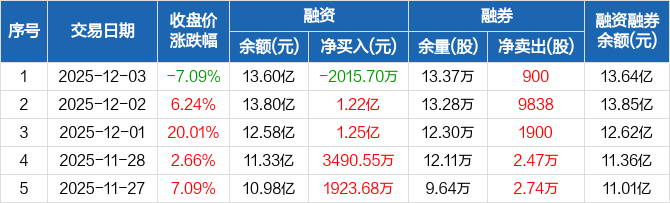 广和通:融资净偿还2015.7万元,融资余额13.6亿元(12-03)