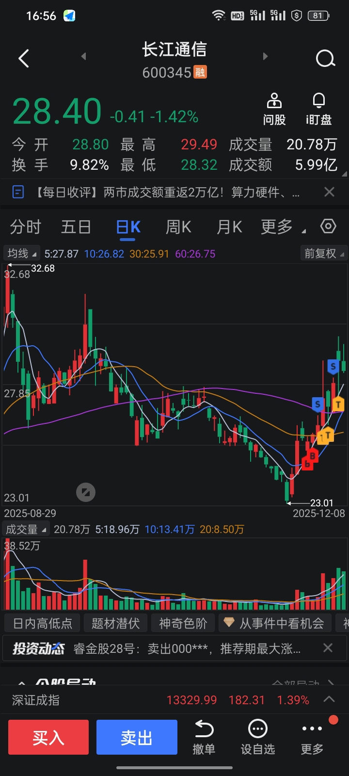 $广和通(SZ300638)$ $航天科技(SZ000901)$ $鸿博股份(SZ002229)$ 早盘集合竞价买入了广和通,逢高卖出了鸿博股份,航天科技继续持有观望,周五逢高减仓的长江通信耐心等待明天低点出现